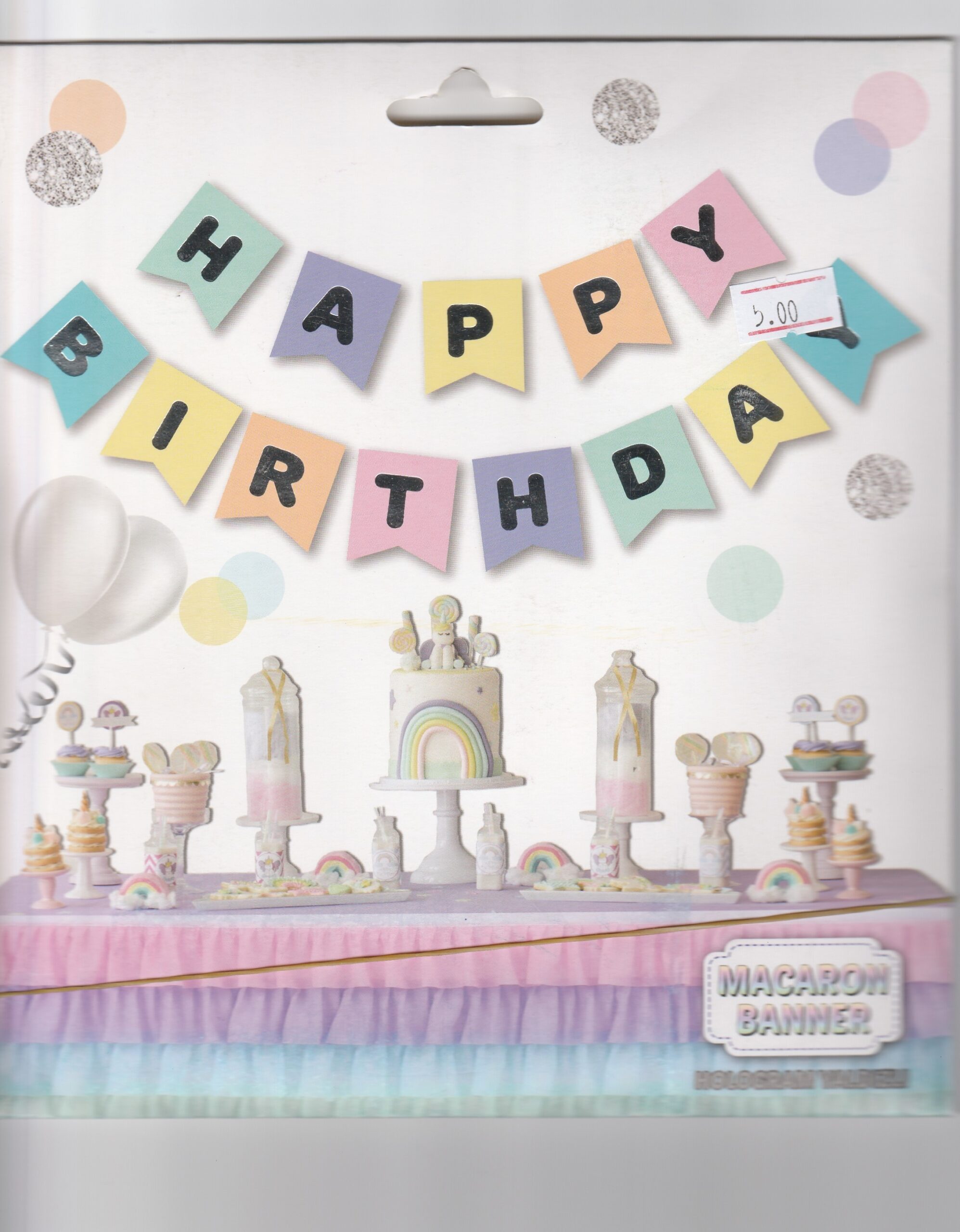 Добавете весело настроение и ярка атмосфера на рожден ден или специално събитие с този красив банер. Съчетание от нежни пастелни цветове, вдъхновени от любимите макарони, ще придаде на празника уникален и весел вид.