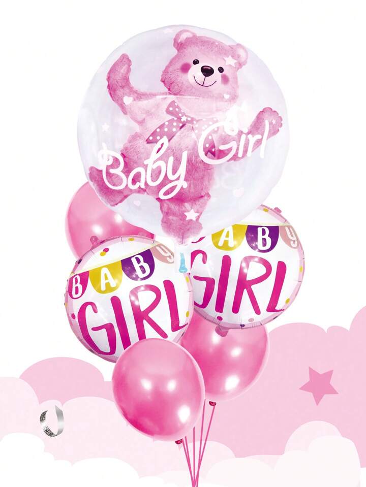 🎈 Комплект от 5 бр. фолиеви балони с мече за момиче 🧸🎀
