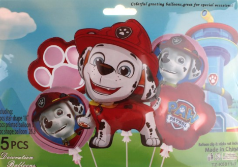 Привлечете вниманието на малчуганите с тези страхотни фолиеви балони в стил Пес Патрул! Комплектът включва 5 бр. балона с героите от любимото детско шоу, които ще направят всяко събитие още по-забавно и вълнуващо. Тези балони са идеални за рожден ден, празнични декорации или тематични партита, вдъхновени от приключенията на Пес Патрул.